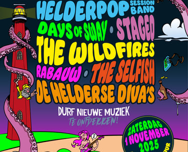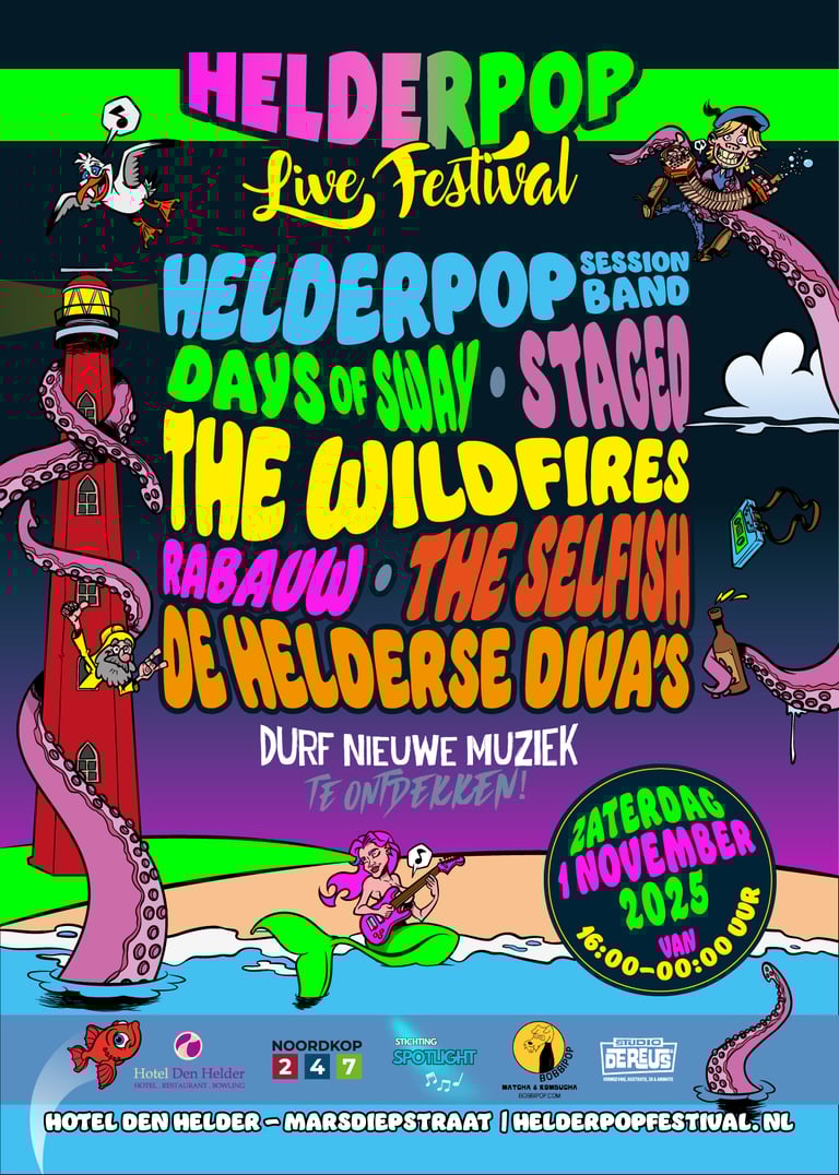 Op zaterdag 1 november 2025 verandert Hotel Den Helder in hét muziekepicentrum van de regio. Tijdens Helderpop Live Festival geniet je van een unieke mix van live muziek, lekker eten & drinken, entertainment en een bruisende festivalsfeer.